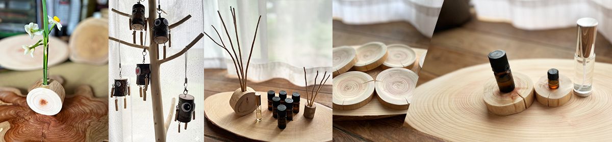 左から一輪挿し・さくらのキーホルダー・ディヒューザーセット・豆皿・ひのき精油と蒸留水