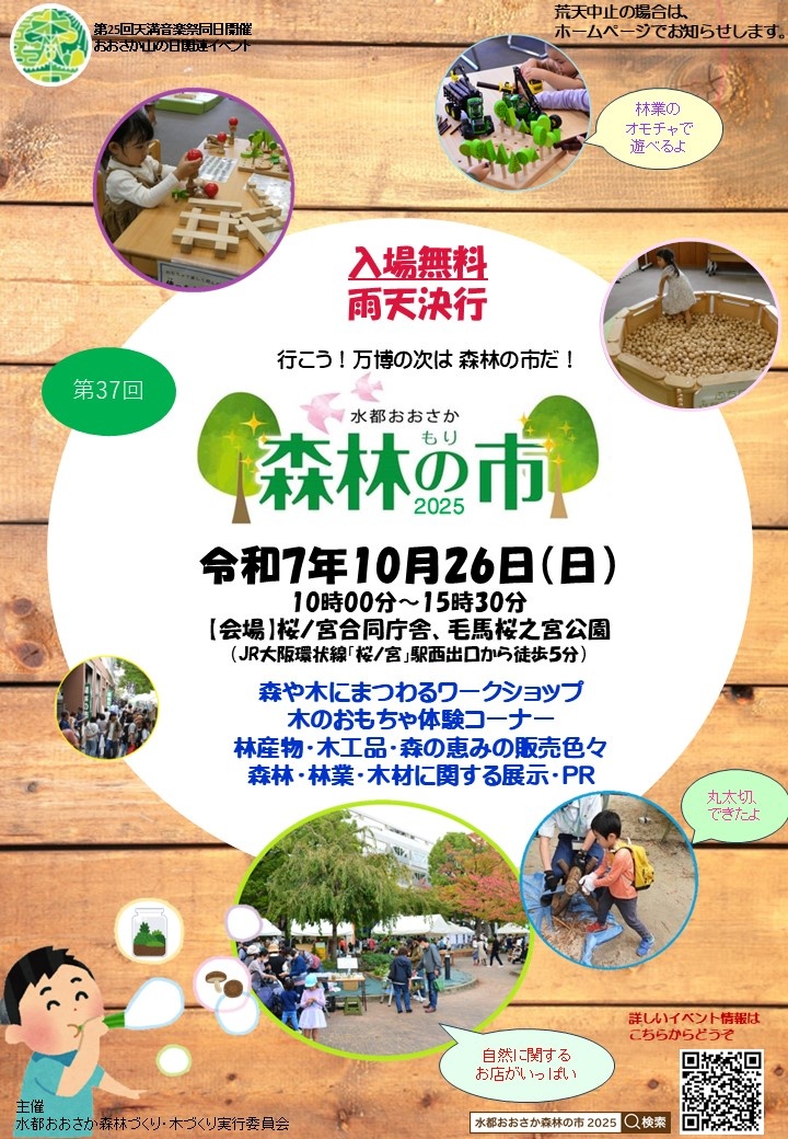 主催の近畿中国森林管理局HP内▶水都おおさか森林の市2025
